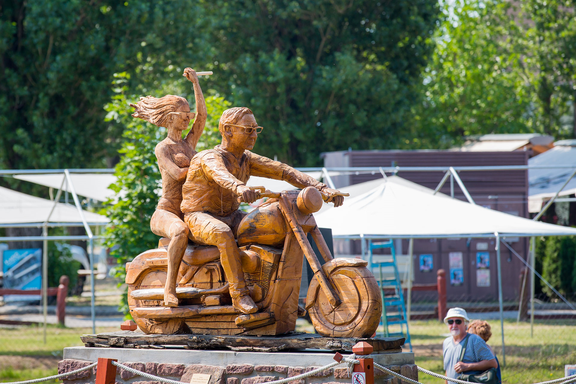 Gáborecz István faszobrásznak és egy STIHL fűrésznek köszönhetően Alsóörs ikonikus jelképe újabb szoborral gazdagodott. Az idén 20 éves Harley-Davidson Open Road Fest keretében a Fat Boy és ridere életnagyságú utast kapott egy dekoratív hölgy személyében. A 167 cm magas, 90-70-90 arányokkal büszkélkedő nőt mintázó alkotással bővült kompozíciót mostantól bárki megcsodálhatja a Strand sétányon.