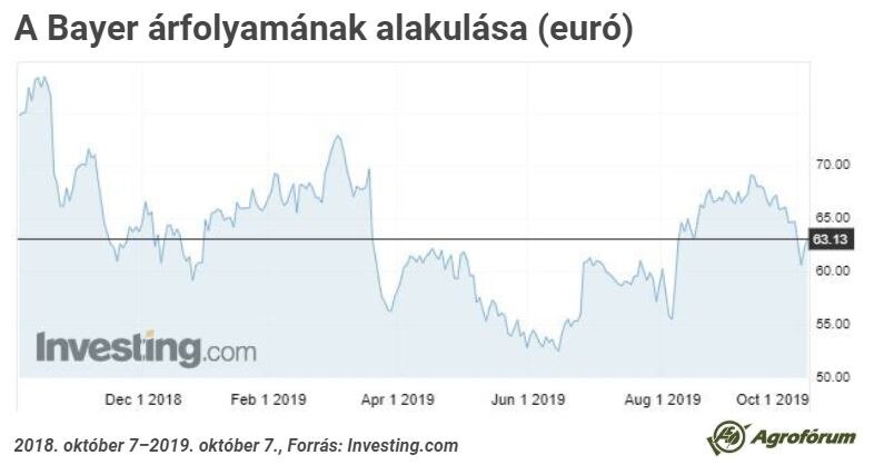 A részvény végül 63,13 eurón, 1,36 százalékos emelkedéssel hagyta el a parkettet, de napközben 64,1 eurón is kötöttek üzletet a frankfurti tőzsdén. Idén 4,2 százalékkal erősödött, ám az elmúlt egy évben 15,6 százalékkal gyengült a Bayer árfolyama. Idén csaknem egy hónapja még 69 eurón járt az árfolyam, ami 2019-es csúcsérték. Ezzel szemben június közepén majdnem 52 euró alá ment a kurzus.