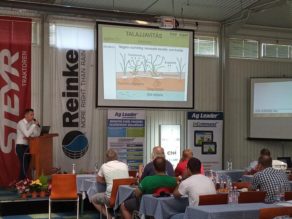 Bucsi Tamás az Agro Aim Hungária Kft. talajvédelmi szakértője előadásában részletesen kifejtette, hogy ma Magyarországon milyen lehetőségek (eszközök/szaktudás) vannak jelen, ha valaki el szeretne indulni a helyspecifikus gazdálkodás irányába. Részletesen bemutatta, hogy a kisebb kezelési egységek kialakításában is nagy különbségek lehetnek. Mindegyik módszernek megvannak az előnyei és a gyengeségei is, melyekre részletesen felhívta a jelenlevők figyelmét. „Ha a zónákat rosszul jelöljük ki, akkor az egész precíziós gazdálkodás alapja instabil lesz” – mondta a szakértő, aki ezt követően a minták kielemzését, részletes független tápanyag-gazdálkodási tervezését mutatta be. Végső soron a tavaly elindított Profit optimalizált növénytermesztési tanácsadási rendszerük kísérleti eredményeit ismertette.