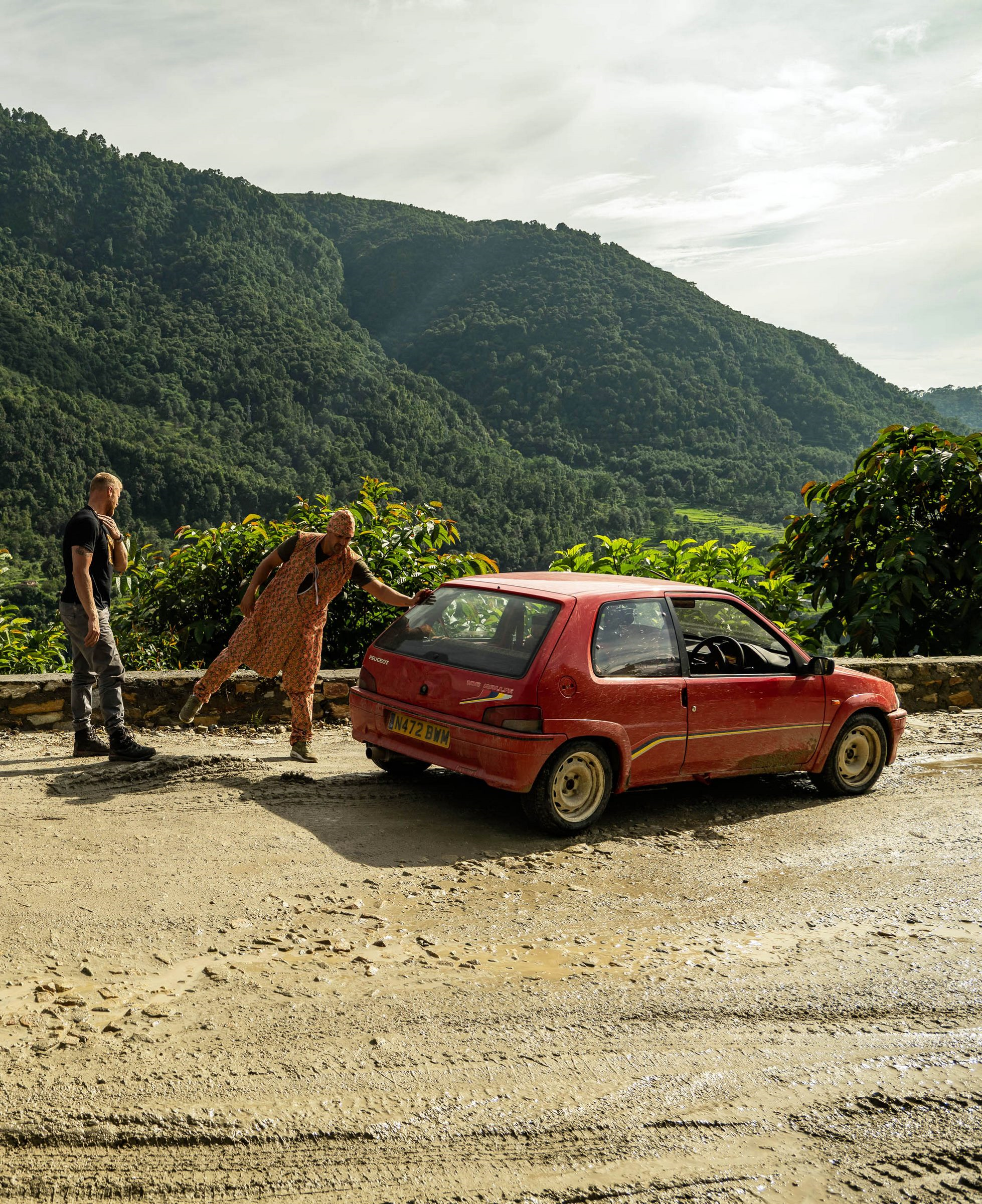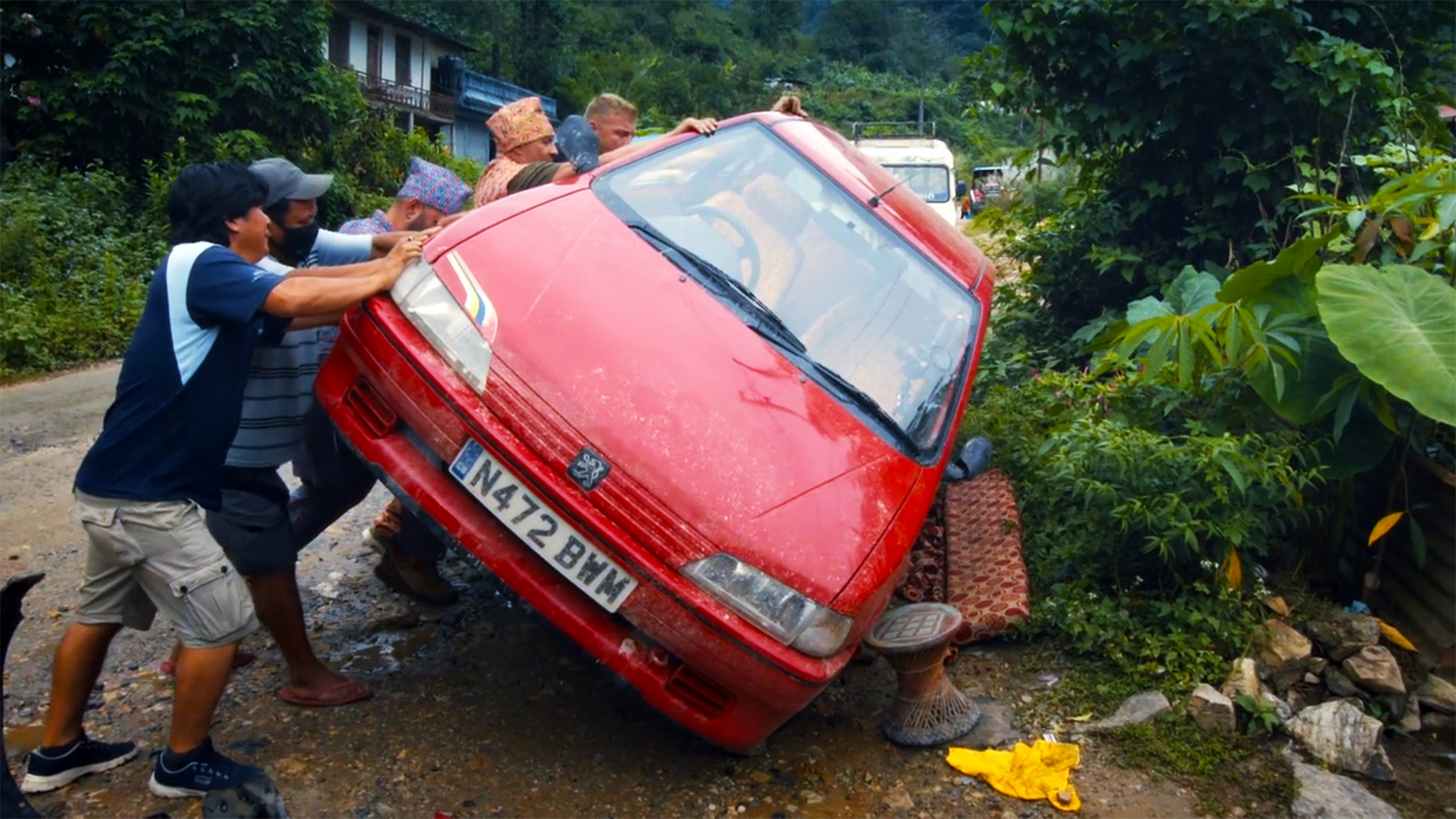 A sors (és a producerek) fintora, hogy az autóversenyző Chris Harris a trió leggyengébb, leglassabb autóját kapta meg, holott sokkal testhezállóbb választás lett volna számára az a Peugeot 106 Rallye S1, amellyel kollégája, az ismert televíziós személyiség Paddy McGuinness érkezett meg Nepálba. Eközben harmadik társuk, Andrew Flintoff egykori élsportoló és izomkolosszus a helyi gyártású monstrum, a Hulas Mustang szervokormány nélküli volánjával és minden kapcsolás ellen tiltakozó sebességváltójával birkózott sikeresen.