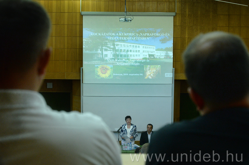 A kukorica-, a napraforgó- és a szójatermesztés kockázatait elemezték a Debreceni Egyetem agrárkarán a Növénytudományi Intézet szeptember 4-ei tanácskozásán. A térség gazdálkodói az ökológiai tényezők hatásait nemcsak elméletben, a gyakorlatban is megismerhették.