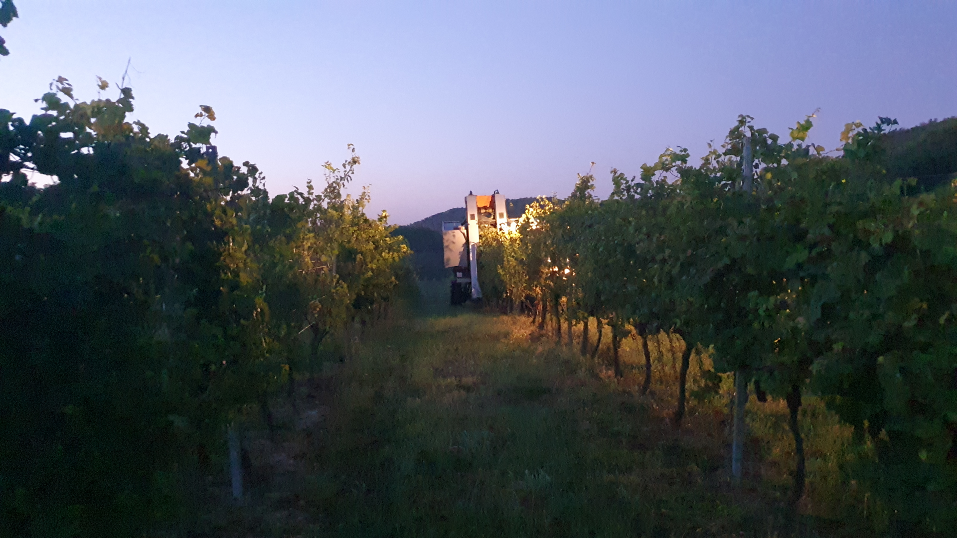 Az elmúlt években a Dóka Éva Pincészete életében az egyik legnagyobb horderejű fejlesztést a szőlőkombájnok (vontatott, önjáró) üzembe állítása jelentette. A gépi betakarítással nagyon kedvezők a tapasztalatok, a gépek nagy területteljesítmény mellett is szépen dolgoznak. Hosszú távon nincs más esélye az ágazatnak. A rendelkezésre álló munkaerő száma csökken, a szélsőségesebbé váló klíma pedig egyre szűkebb intervallumot enged a szőlőszüret optimális időpontjának megválasztására. A kombájnokkal már korán hajnalban lehet dolgozni, a hidegáztatás a korai, (augusztus végi, szeptember eleji) illatos fajtáknál is megvalósulhat.