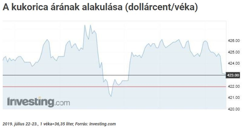 Emelkedett a kukorica ára azt követően, hogy az Egyesült Államok Mezőgazdasági Minisztériuma (USDA) közölte, hogy a kukoricatermés elmaradhat a várakozásoktól. Az USDA szerint a kukoricaföldek 57 százaléka van jó vagy kiváló állapotban. Ez múlt héten még 58 százalék volt és az elemzők is arra számítottak előzetesen, hogy az adat az 58 százalékos szinten marad – írta a Reutersre hivatkozva a CNBC.