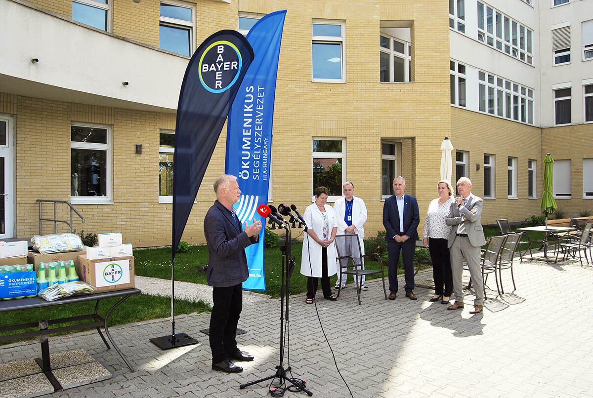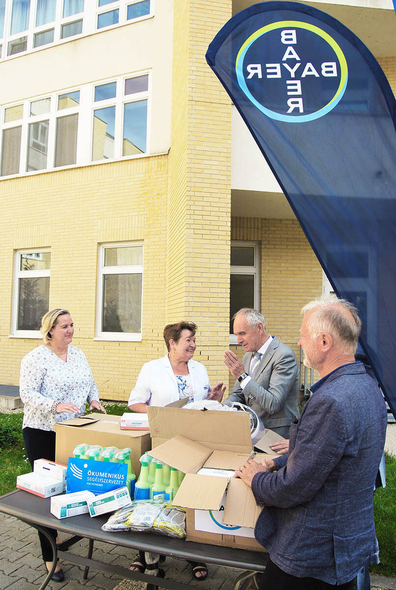 Lehel László, a Magyar Ökumenikus Segélyszervezet elnök-igazgatója megköszönve a vállalat támogatását elmondta, hogy a járványhelyzet első napjától fogva megfeszített erővel végzik országos intézményhálózatukon keresztül a rászorulók támogatását. A védőfelszerlések használata alapvető szükséglet a munkatársak, valamint a kliensek számára, hiszen sokan közülük a legveszélyeztetettebb csoportba tartoznak járványügyi szempontból. A Bayer Hungária Kft. adományában részesülő egészségügyi és szociális intézmények kiválasztásakor elsősorban az országos lefedettségre törekedtek. A kaposvári kórház mellett így hamarosan ugyanilyen tartalmú adománycsomag kerül az Országos Onkológiai Intézetbe, a budapesti Szent Margit Kórházba, a Debreceni Egyetem onkológiájára, a Békés Megyei Központi Kórház onkológiai osztályára, a BAZ Megyei Központi Kórház és Egyetemi Oktatókórház onkológiájára, az Onkoterápiás Klinikára, továbbá az Ökumenikus Segélyszervezet erőspusztai Időskorúak Gondozóházába és a gyulai hajléktalanokkal foglalkozó intézményébe, illetve evangélikus és a református fenntartású idősek otthonaiba.