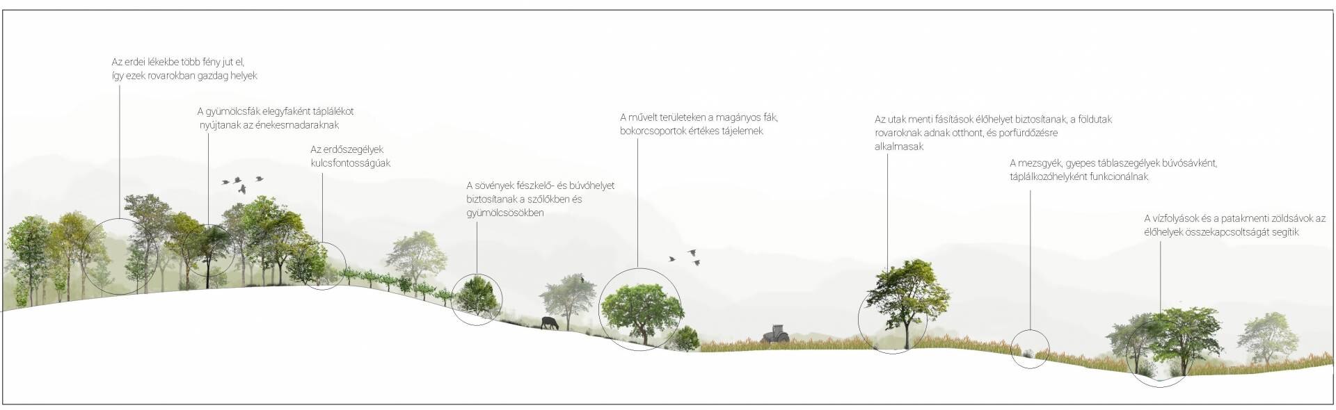 A mezőgazdasági területek kietlenségének másik oka az olyan tájelemek hiánya, amelyek az átjárhatóságat segítik, búvó- és fészkelőhelyet biztosíthatnának az agrártájhoz kötődő állatok számára, szegélyélőhelyekként funkcionálnak. Ilyen tájelem lehet a fásítás – út mentén, patak mentén, vagy parcellahatáron kialakított mezővédő erdősávok, fasorok esetleg régi majorfásítások. A nem vonalas, fás elemek is hasznosak lehetnek, hiszen a fa- és bokorcsoportok, valamint a magányos fák búvóhelyül szolgálhatnak az énekesmadaraknak, és fészkelési lehetőséget is rejtenek magukban a szántókon táplálkozó fajoknak.