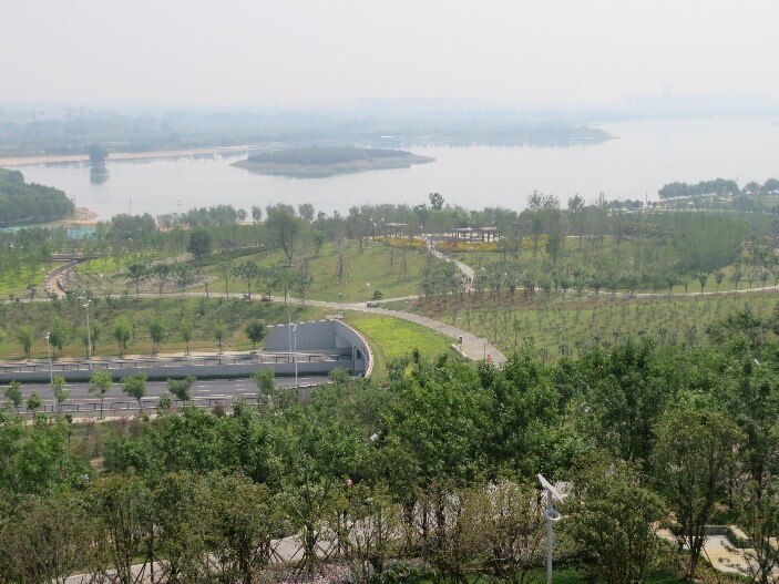 Kisho Kurokowa tervezte meg az új kerület közelében elhelyezkedő 2 450 000 m² kiterjedésű közparkot. A park központi eleme a hatalmas mesterséges tó (Dragon Lake/Sárkány tó), amelyen több szigetet is kialakítottak: a legnagyobb kiterjedésű egy üzleti központnak otthont adó sziget, valamint kisebb természetszerű vegetációval rendelkező sziget.