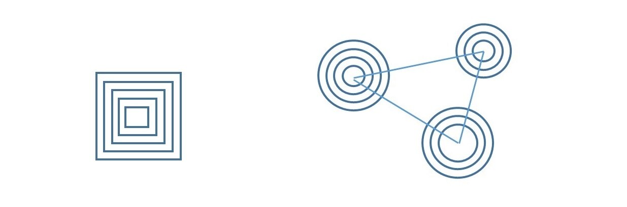 5. ábra: A régi város négyzetes, az új több központú körkörös szerkezete (Rajz: Zhang Shu Mei)