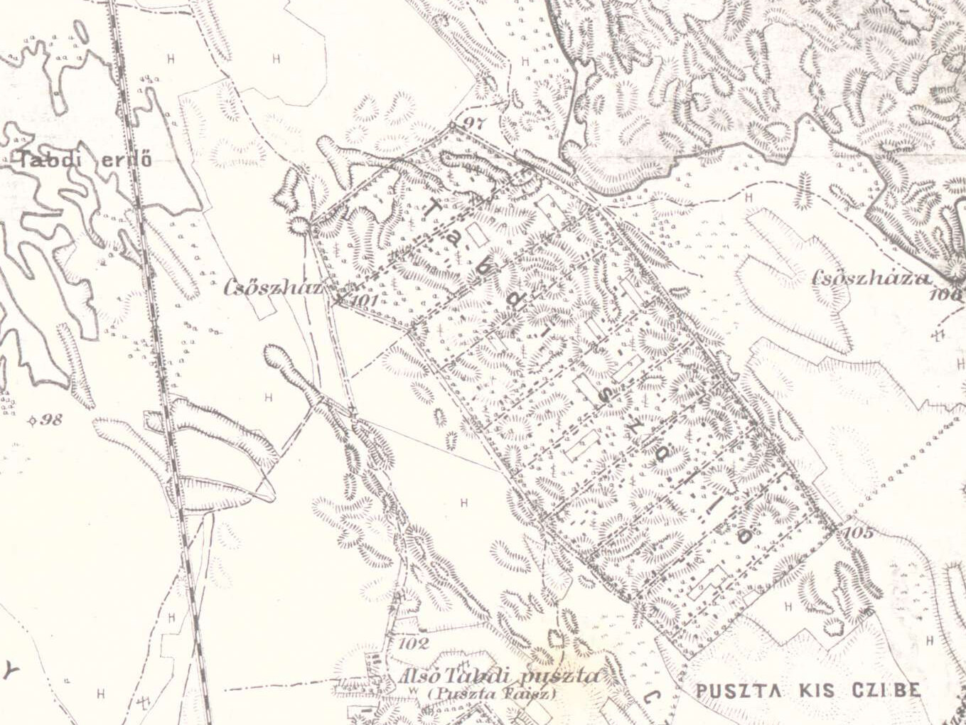 3. ábra: „Tabdi-szőllő” Kiskőröstől északra található, kiparcellázott szőlő, gyümölcsös ültetvény a III. katonai felmérés idején (1869-1887) (Forrás: mapire.hu)