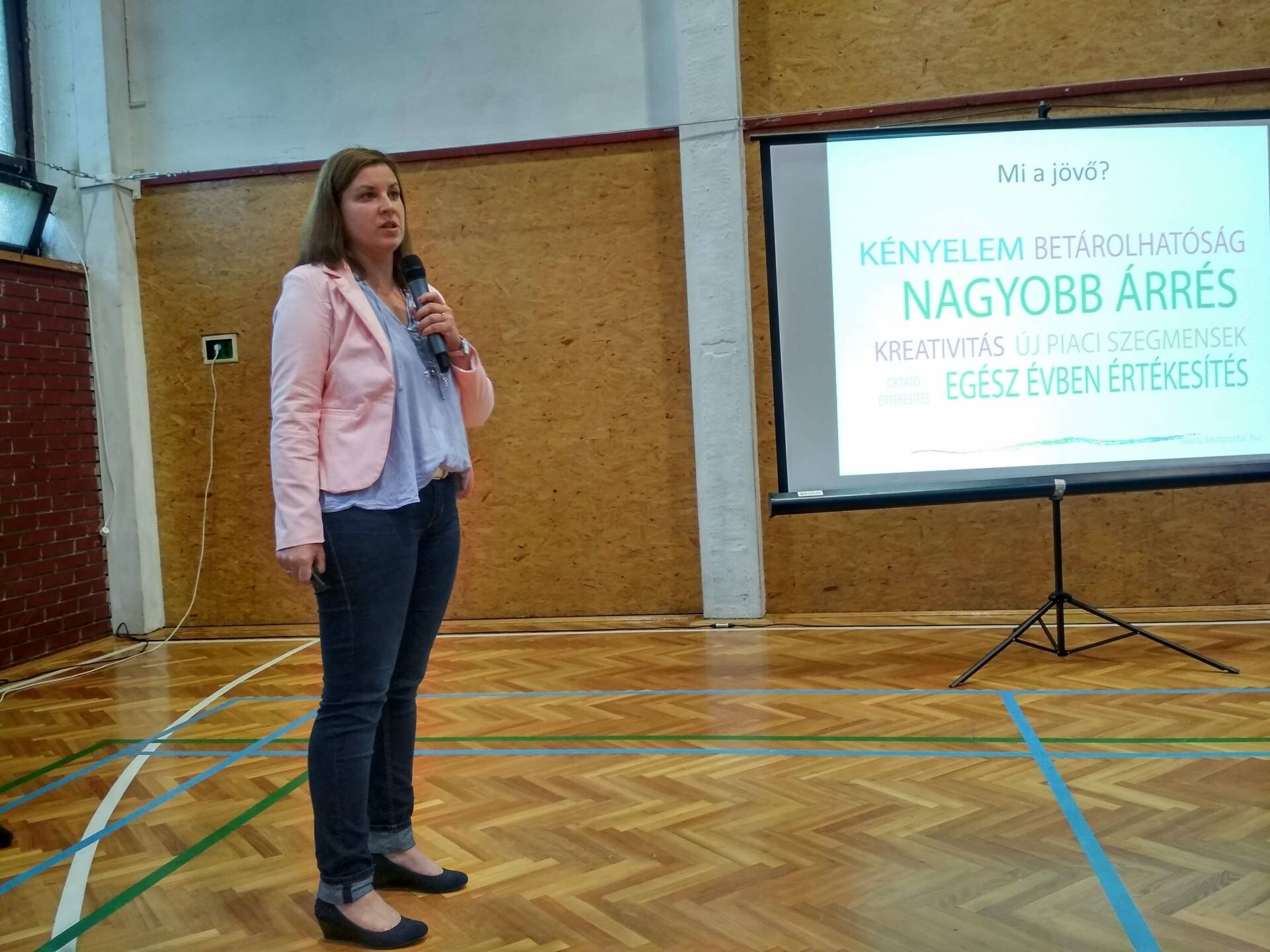 Vargáné Topor Erika, a Kertportál magazin főszerkesztője pedig arra biztatta a termelőket, hogy ne hagyjanak termést kárba veszni. Saját példáján mesélte el, hogy mennyi különbség van a friss termék és a feldolgozott termék piaci ára között, valamint elemezte, hogy mennyi pozitív hozadéka van a feldolgozás felé nyitásnak is. Kérte, hogy ne kezdjék el rögtön nagyban, nem Európa meghódítása a cél, de kicsiben próbálják ki, hogy a másod-harmadosztályú eladhatatlan meggyből például lekvárt főznek. Azért ezt hozta példának, mert logikusan lekvárt bárki képes készíteni, viszont sokszoros bevételre számíthat az, aki 1 kg meggyet lekvárként értékesít, mintha ugyanazt friss piacra adná.