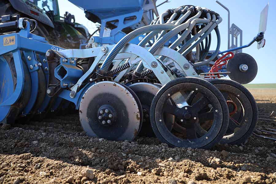 A vetőegység karbantartásmentes OptiDisc vetőgerendelyekből áll, amelyek paralelogramma-vezetésű OptiDisc M dupla tárcsás csoroszlyákkal rendelkeznek. A mechanikusan állítható, akár 45 kg-os csoroszlyanyomásnak köszönhetően ezek a csoroszlyák nehéz körülmények között is precíz lehelyezést tesznek lehetővé.