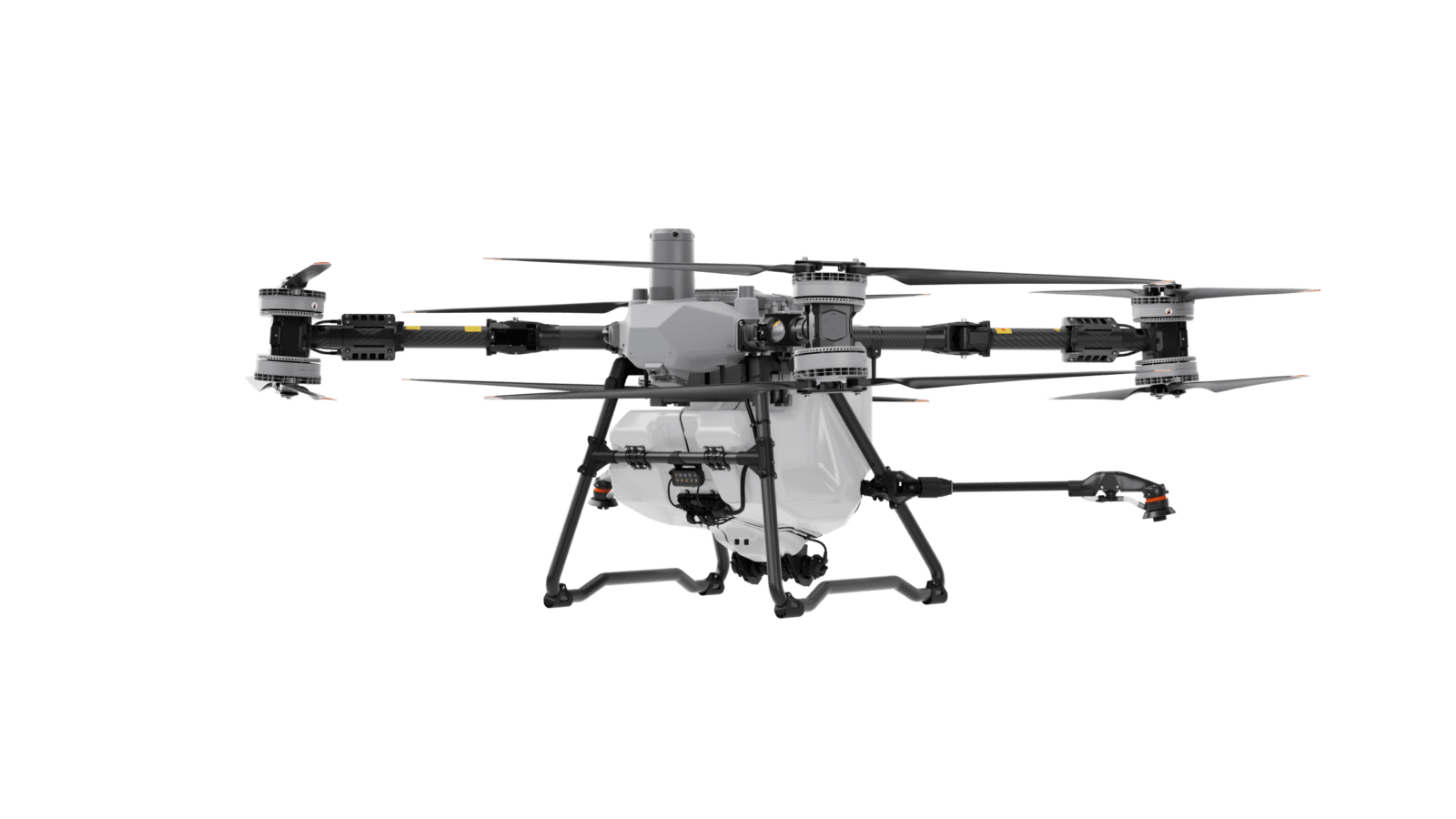 A középkategóriát képviselő T70P már sokkal nagyobb kapacitást és szélesebb alkalmazási lehetőségeket kínál. A drón 70 literes permetlétartállyal rendelkezik, maximális felszállótömege elérheti a 130 kg-ot is. A szivattyúk alapértelmezett folyadékárama 30 liter/perc, ami négyszórófejes CDA konfigurációval akár 40 liter/percig növelhető. A cseppméret itt is 50-500 mikron között állítható, a munkaszélesség pedig 4-11 méter között alkalmazható, így a drón a közepes és nagyobb területek kiváló légi kijuttatóeszköze. A T70P szintén továbbfejlesztett csigás szilárdanyag-kijuttató rendszere akár 400 kilogramm percenkénti kiadagolásra képes, ami különösen hasznos műtrágya- vagy vetőmagterítéskor. Emellett a drón akár 65 kilogrammos teher emelésére is alkalmas, így logisztikai feladatokra, például kisebb anyagmozgatási munkákra is alkalmazható. A 20 méter/másodperc maximális repülési sebesség és a Safety System 3.0 akadályérzékelő rendszere biztosítja, hogy nagy terhelés mellett is biztonságosan, stabil repüléssel végezze munkáját.