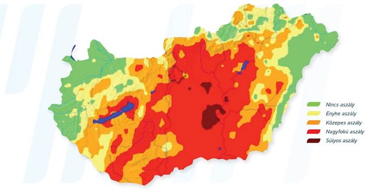 Aszályszint 2025. 07. 27-én, mely erősen korrelál a várható kukorica-terméshozamokkal (Forrás: www.met.hu)