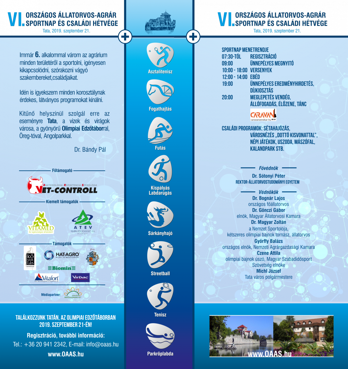 „Ebben az évben is igyekszünk minden korosztálynak aktív programokat kínálni szeptember 21-én. A helyszín ezúttal is Tata lesz, a gyönyörű Olimpiai Edzőtáborral, Öreg-tóval, Angolparkkal.” – mondta Dr. Bándy Pál, az esemény főszervezője.