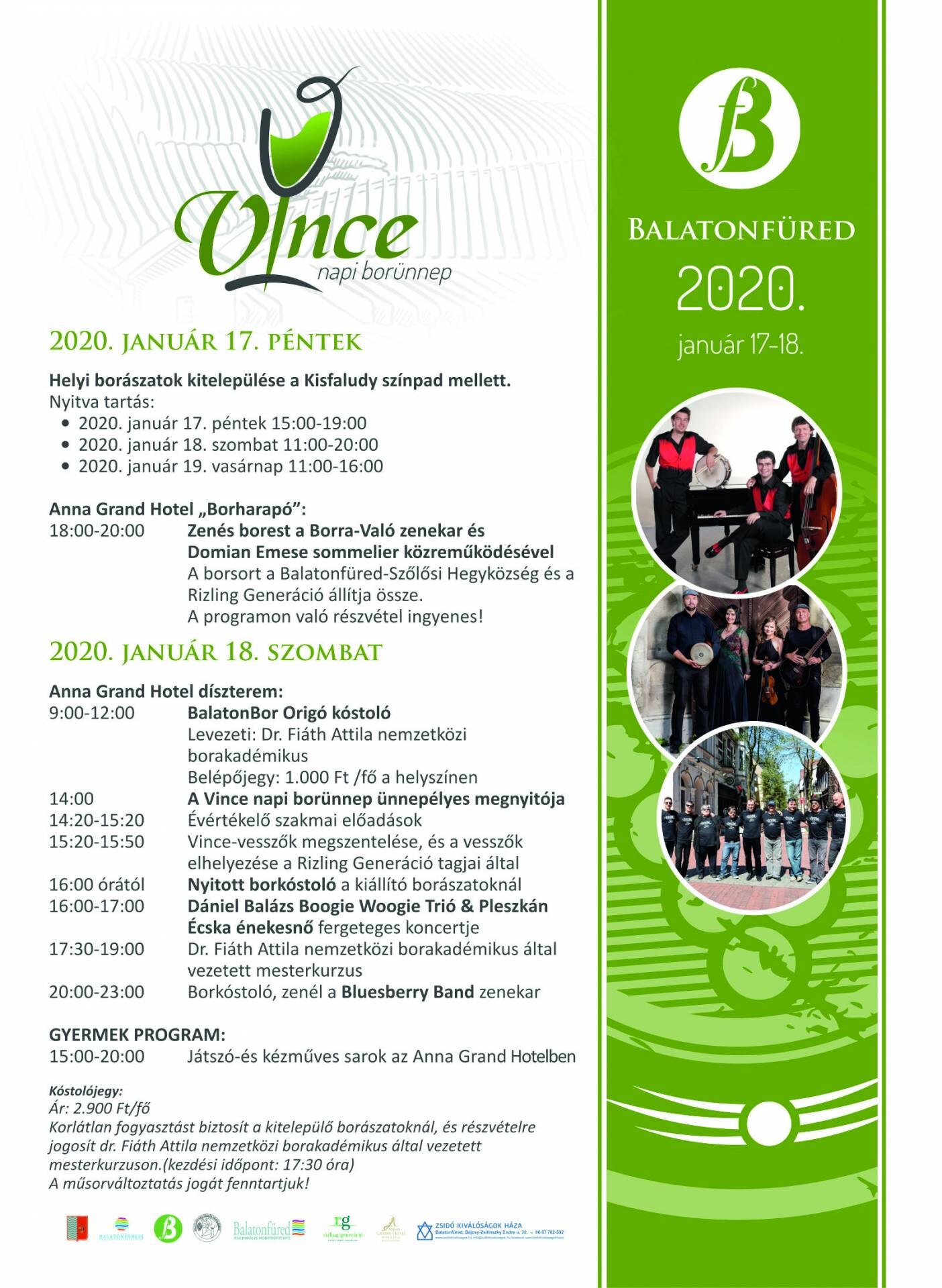 A Vince-napi Borünnep szakmai előadásokat, kiváló borokat, borvacsorát, kóstolókat és színvonalas kísérőprogramokat kínál az érdeklődőknek 2020. január 17-18-án Balatonfüreden.