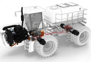 Sebességváltó: Hibrid, mindegyik keréken független villanymotorral, amelyek teljesítményét frekvenciaváltók vezérlik. Állandó forgatónyomaték és 95% -os energiahatékonyság.