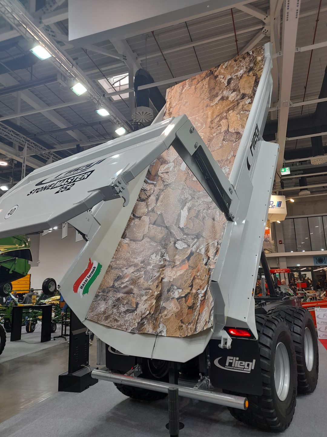 Látszólag „kakukktojásként” szerepelt a standon a Stone Master 252 építőipari billenőkocsi, amelyet kifejezetten nehéz anyagok szállítására fejlesztettek ki. A 25 tonna megengedett össztömegű, 15 köbméter rakodókapacitású pótkocsi hatékony eszköz a föld, kavics, építési törmelék mozgatására, hiszen a legmostohább körülményekre lett tervezve. A rendkívül masszív felépítmény teljes egészében nagy kopásállóságú, 450 HB keménységű acélból készül, beleértve az alvázlemezt és az oldalfalakat is. A Stone Masternek van létjogosultsága a mezőgazdaságban is. Az ÁTK pályázatban ugyanis van telephely-beruházási támogatás is, ez a munka pedig nagy mennyiségű anyagmozgatással jár, és egy kis beruházással a gazdáknak nem kell drága szolgáltatást igénybe venniük hozzá.