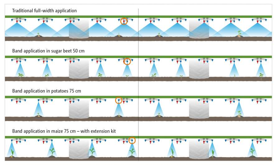 A mechanikai sorközművelés és a sorok sávos permetezésének kombinációja jó példa a növényvédőszer-takarékossággal megvalósítható hatékony növényvédelemre. A fejlesztési előrejelzések a jobb szenzorok, kijuttatási térképek, új fúvóka technológiák alkalmazásával létrehozható permetezési eljárásokról szólnak, amelyekkel a növényvédelem sokkal hatékonyabb és fenntartható eljárás lesz. A nagyobb teljesítményű, elektronizált szántóföldi permetezőgépek, amelyek folyékony műtrágya kijuttatására alkalmas adapterekkel is kiegészíthetők, további lehetőséget ajánlanak a felhasználóknak. Mindezeket a megoldásokat reprezentáló növényvédő gépek sokasága volt látható az Agritechnica kiállításon.