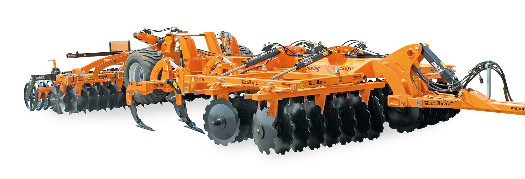 A MA/AG olasz gyártó termékkínálata is nagy segítség lehet a tavaszi munkálatokban, termékeik közül kiemelném a sorközművelő kultivátorokat, sorköz lazítókat, és speciális VARIO rendszerű szemenkénti vetőgépeket. A későbbi időszak, – aratást követő talajművelési feladatainak költséghatékony elvégzéséhez ajánljuk a közép mély – mélylazítók, nehéztárcsák, rövidtárcsák, mulcs kombinátorok széles választékát, ezek közül talán leginkább kiemelkedik a Cultirapid Pro sorozat, mely robosztus szerkezeti felépítésével 4 műveletet egy menetben történő kompromisszumok nélküli elvégzését teszi lehetővé! Első elemként egy „X” tárcsa került beépítésre, majd ezt egy fokozatmentesen állítható max. 40 cm mélységig alkalmazható középlazító követi, egy dupla aprító tárcsás egység végzi a harmadik műveletet és végül egy tömörítő henger zárja le a kombinált műveletsort. Így érhető el az optimális talajszerkezet, csökkenthető a művelési menetszám, mely alacsony művelési költségeket jelent, s fenntarthatóbb lesz a talaj termőképessége is.