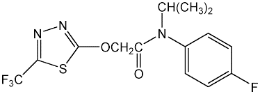 A hatóanyag a HRAC besorolás szerint a K3 csoport, csírázás és növekedésgátló hatóanyagok, azon belül az oxyacetamid kémiai család képviselője. Hatását, hasonlóan a klóracetamid herbicidekhez, a csíranövények merisztemikus szöveteiben a sejtosztódás gátlásán keresztül fejti ki. A hatáskifejtés helyének pontos biokémiai reakció gátlása nem ismert, de a herbicid jelenlétében zavart szenved az érintett szövetek membrán-növekedése, -fejlődése, amely különösen erőteljes az osztódószövetekben, végső soron a levelek, hajtások akár a gyökerek növekedésének deformációjában nyilvánul meg. A hatóanyag transzlokációja a xylemben megy végbe. A hatóanyag vízoldékonysága 20 °C-on 56 mg/l.