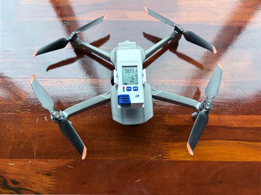 A vizsgálatok egy mintegy 75 hektáros almás ültetvényben zajlottak, ahol 8 darab Wepifrost, 12 méteres, fixen telepített, horizontális tengelyű fagyvédelmi szélgép üzemelt. A gépek elhelyezése lehetővé tette a legértékesebb területrészek lefedését. A hőmérsékletprofil-mérések DJI Mavic Air 2 típusú multirotoros drónnal történtek, amelyre egy kalibrált Dostmann Electronics hőmérséklet/páratartalom/légnyomás adatgyűjtő volt rögzítve (1. kép).