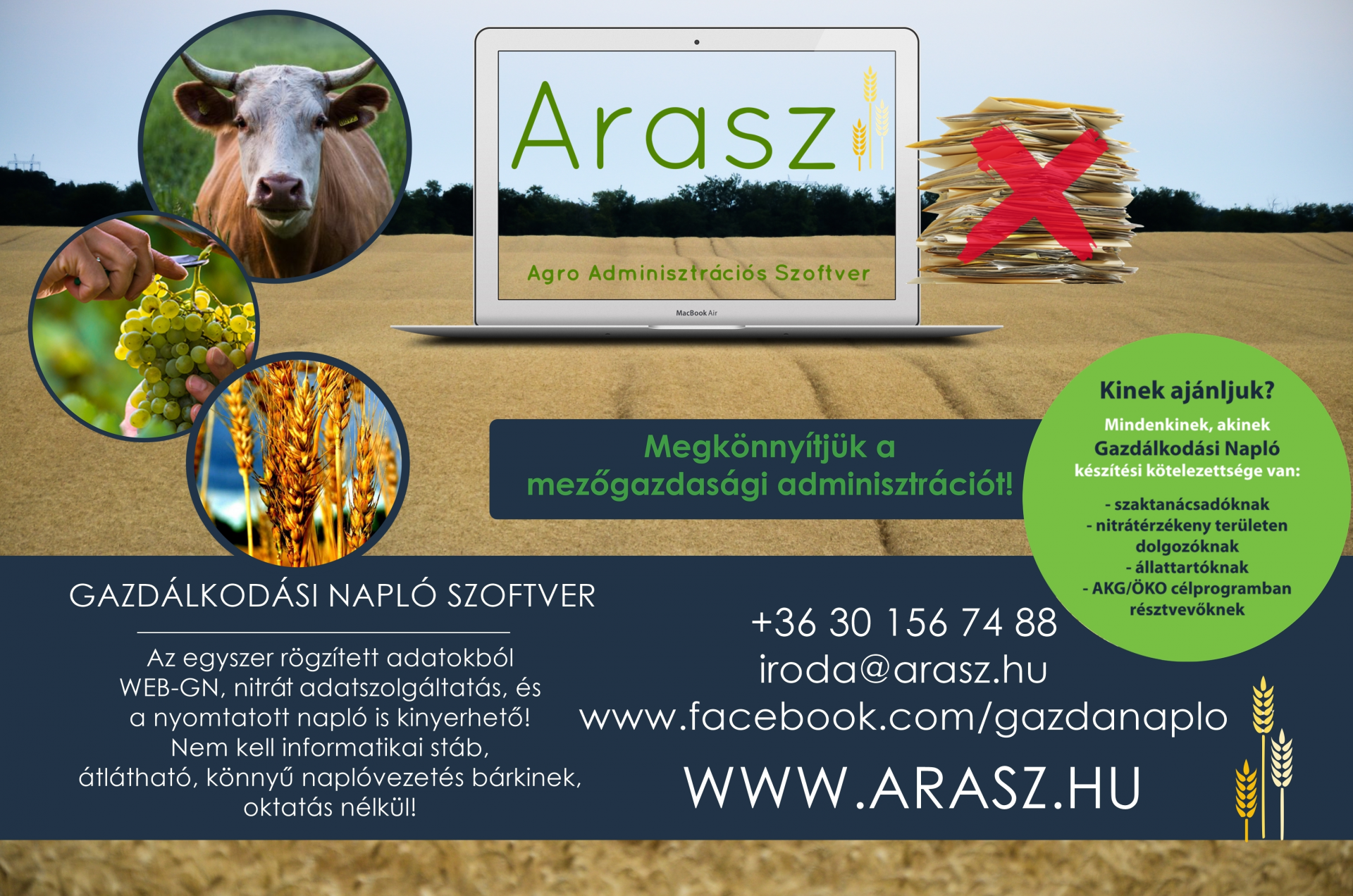 Ha Önt érdekli az ARASZ, a www.arasz.hu oldalon , vagy e-mailben az iroda@arasz.hu címen, de akár a facebook-on is a facebook.com/gazdanaplo oldalon utánanézhet. Miután felvettük a kapcsolatot a gazdaság, vagy partnerek számát figyelembe véve készítünk ajánlatot a szoftver használatához. Rendelkezésre áll egy naprakészen tartott Felhasználói Kézikönyv is, amit szerződéskötéskor megkapnak az ügyfeleink.