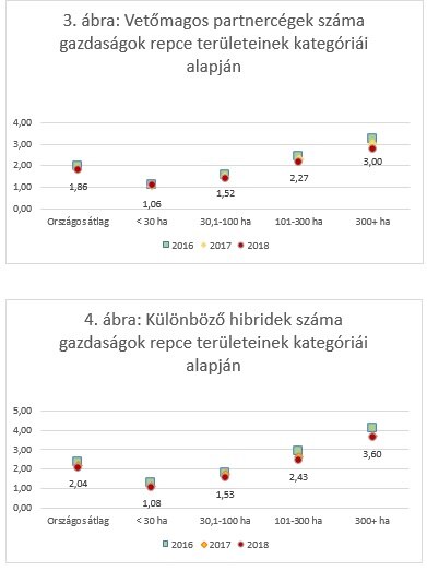 Nemcsak a cégek, hanem a vetett hibridek száma is csökkenést mutat, 2,36 hibridet vetettek átlagosan a gazdaságok a 2016-2017-es szezonban és ez a szám 2,04-re csökkent az aktuális szezonban.