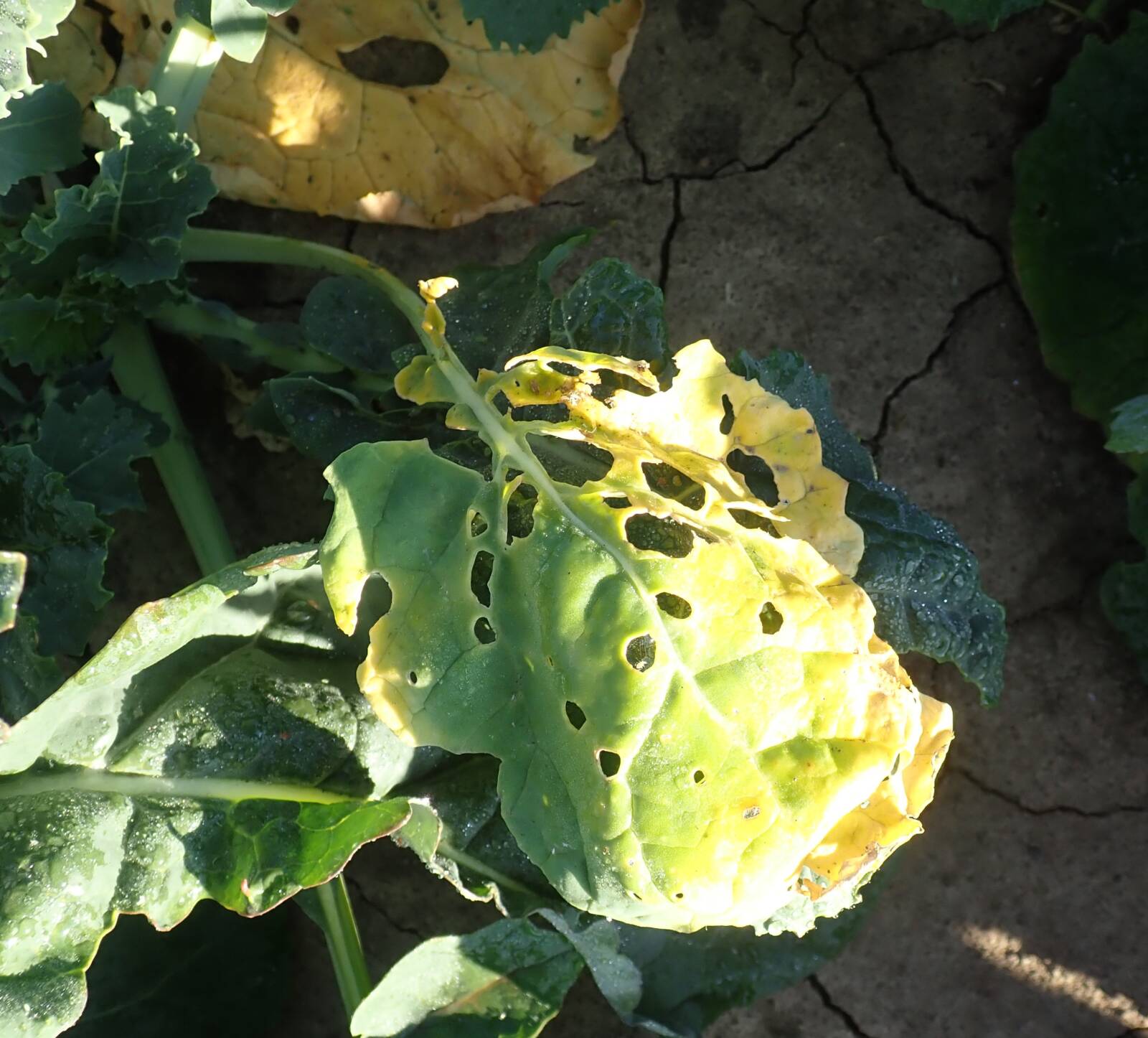 Az egyik ilyen károsító az évente három nemzedéket is felnevelő káposztamoly (Plutella maculipennis). Hernyói a levelek fonákán eleinte hámozgatnak, később már lyukakat is rágnak a levelekbe.