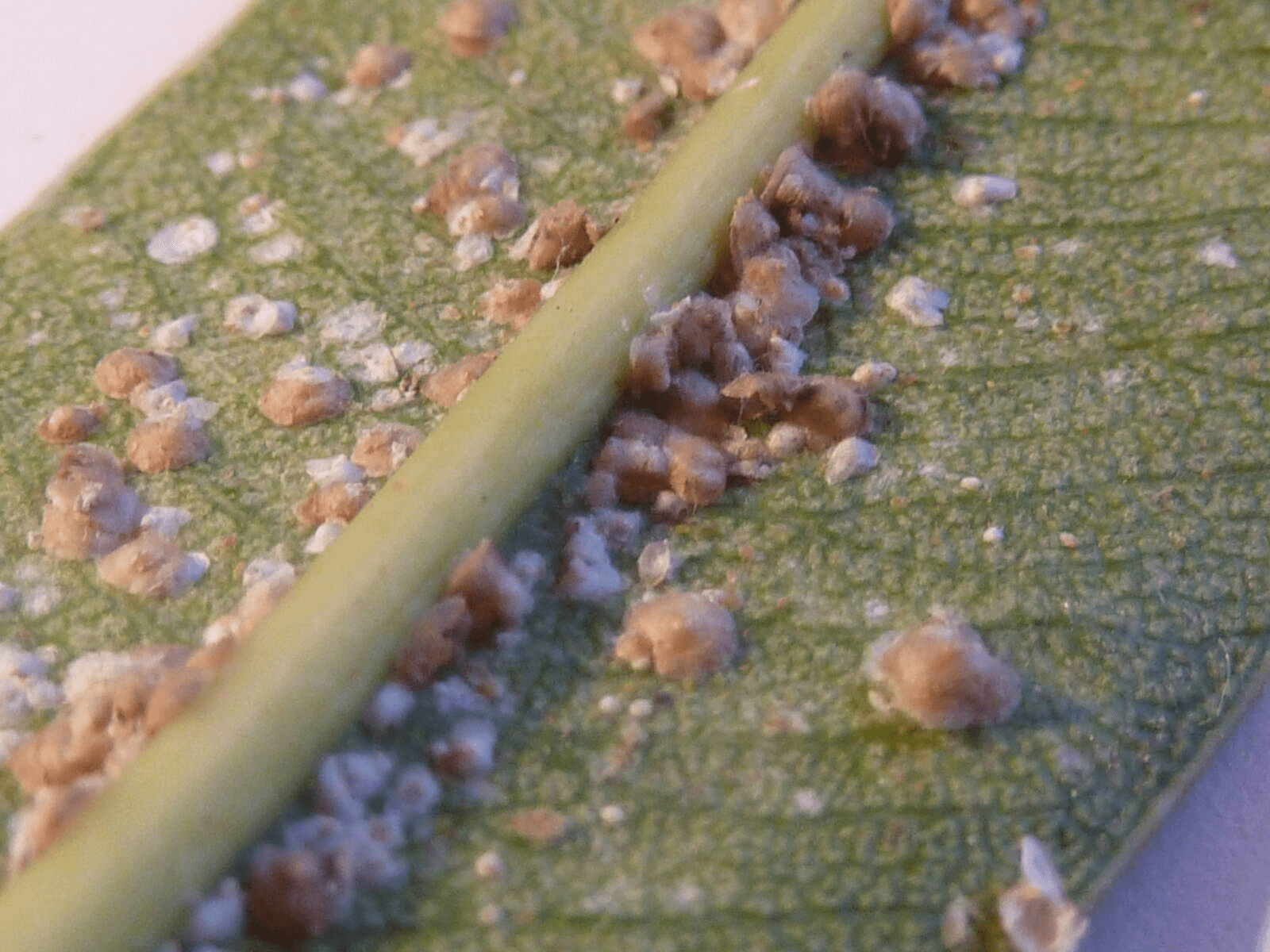 A narancsolaj is bevethető, kiszárítja az atkákat. A viaszos levelű leandereknél tapadószert is használjanak. A gyökereken át felszívódó atkaölő szerünk nincs, csak az ismételten elvégzett permetezésekkel tisztíthatjuk meg a növényünket a betárolásig. A fotón már egy erős fertőzés tüneteit láthatják.
