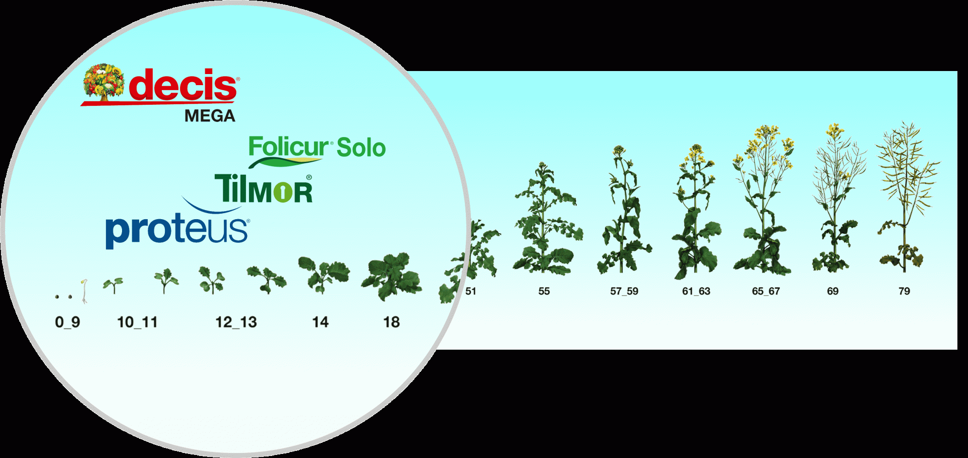 Alkalmazása ősszel fejletlen, egyenetlen növényállomány megerősítésére a repce 4 leveles állapotától javasolt. Ajánlott dózisa ekkor 0,5 l/ha. Az erőteljes növekedés és az őszi szárbaindulás blokkolására a repce 4-6 leveles fejlettségénél 0,5-0,6 l/ha, a repce 6-8 leveles fejlettségi állapotában 0,75-0,8 l/ha dózisban alkalmazható. Erős Phoma, vagy Cylindrosporium fertőzés elleni védelemre a repce 6-8 leveles fejlettségénél 1,0 l/ha dózisban nyújt megfelelő védelmet.