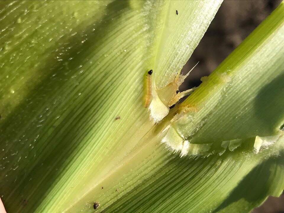 Helyenként az intenzíven növekedő kukorica vetésekben elkezdődött a címerhányás. A kukoricamoly továbbra is intenzíven rajzik, de a korábban kikelt hernyók már jól érzékelhető károsításokat okoznak. A levélhüvelyek megrágása mellett már a szárban is megtelepedtek, de még friss tojásokat is lehet látni.