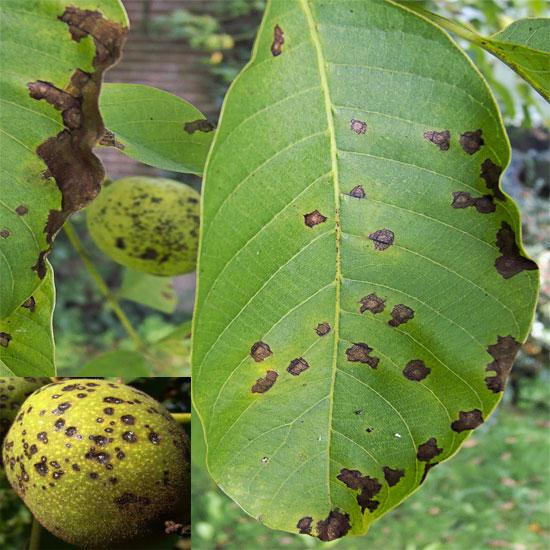A dió buroklégy kártételének tüneteit az idén eddig még nem észlelték a növényorvos kollégák. Szintén erősödik a baktériumos és a gnomóniás levél- és termésfertőzés, amit a korábbi csapadékos időjárás idézett elő. A barnulásos tünetek levélen és termésen egyaránt előfordulnak.