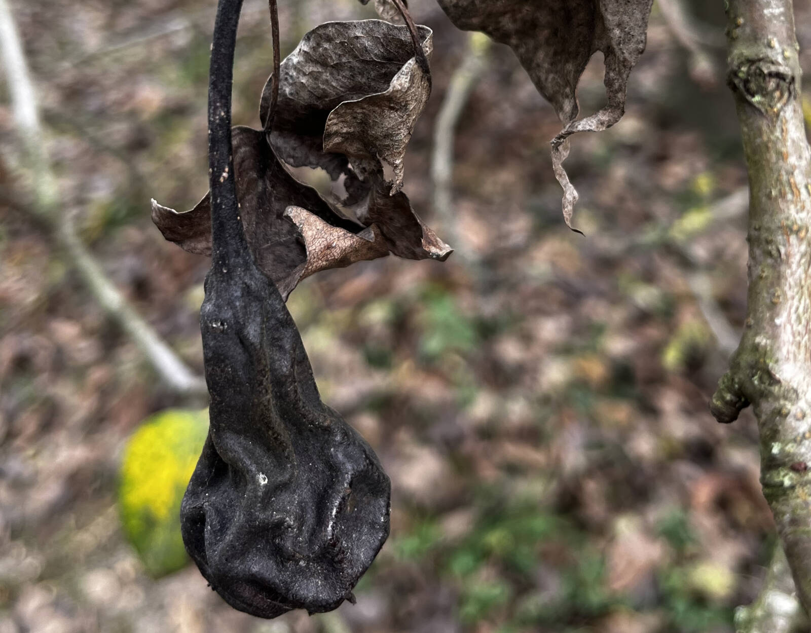 Erwiniás betegség következtében mumifikálódott termés körtefán