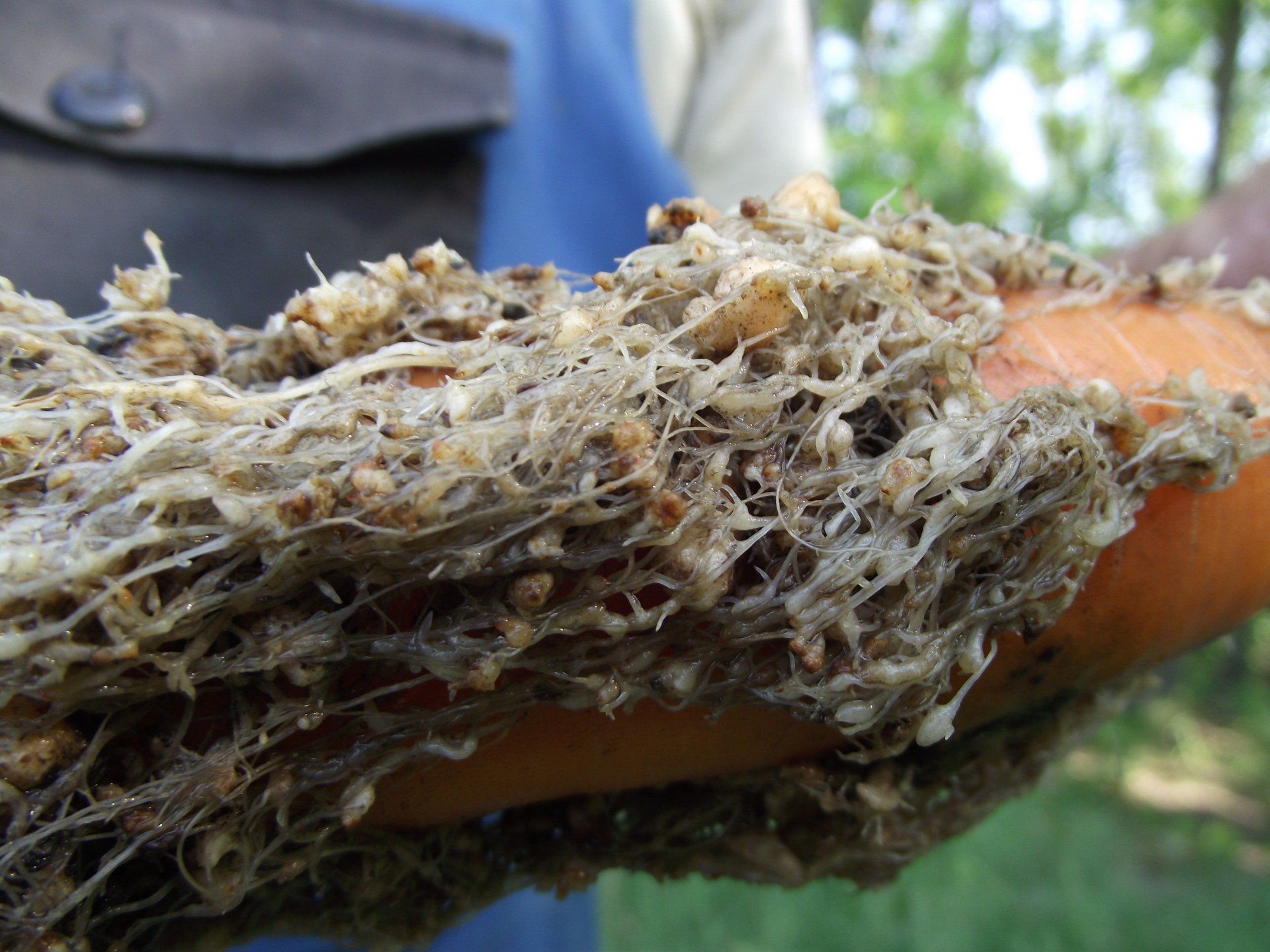 A növényállományban jellemzően foltszerűen jelentkezik, már messziről felismerhető a foltokban sárguló, visszamaradó növény. A fonálférgek táplálkozása során a gyökerén olyan óriássejtek képződnek, melyek ezután már nem képesek a feladatukat ellátni, így leáll a víz-és tápanyagfelvétel. Ezek a kis/nagy gubacsok szabad szemmel is láthatók, ha kiássuk a gyanús egyedeket.