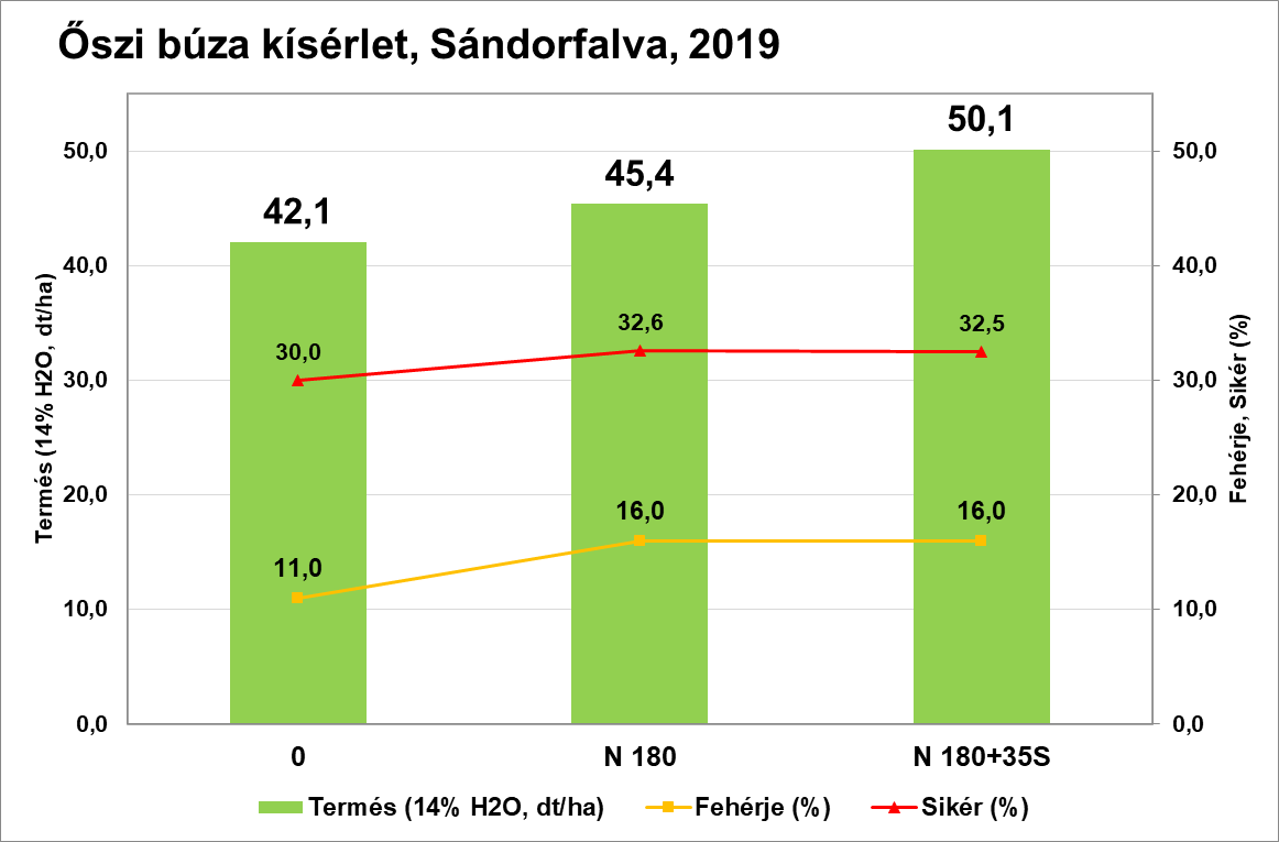 A kénes nitrogénműtrágyák használata az első tavaszi fejtrágyázáskor további termésnövekedést jelent, ahogy a 2019-es szántóföldi kísérleteink eredményei is mutatják: