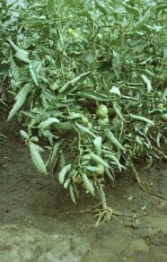 Száraz levegőn – védekezve a kiszáradástól – lezárja a növény légzőnyílásait, aminek következtében leáll a párologtatás, lelassul a transzspiráció, a tápelemek szállítása. Ilyenkor a sokak által jól ismert tünet jelentkezik: a paprikánál és a paradicsomnál a levélpödrődés (3. kép), amit a kukoricánál furulyázásnak is hívnak. Talán ijesztőbb a látvány, mint a termésre gyakorolt hatás, egy-két napos ilyen állapotot a növények kihevernek. (Meg kell jegyezni, hogy a paradicsomnál gyakran tapasztalható levélpödrődést a szárazságon kívül, vírusbetegség, rosszul végzett fitotechnikai munkák és nagyon ritkán a réz hiánya is okozhatja.)