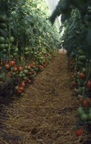 1. kép: Szalmás takarás esetén könnyebb az optimális páratartalmat tartani, és a légtér szén-dioxid tartalma is magasabb, mint fóliás talajtakarás esetén