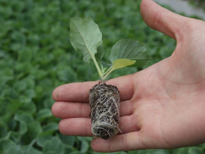 1. kép: A palántanevelő földet dúsan átszövő gyökérzet a jó minőségre utal