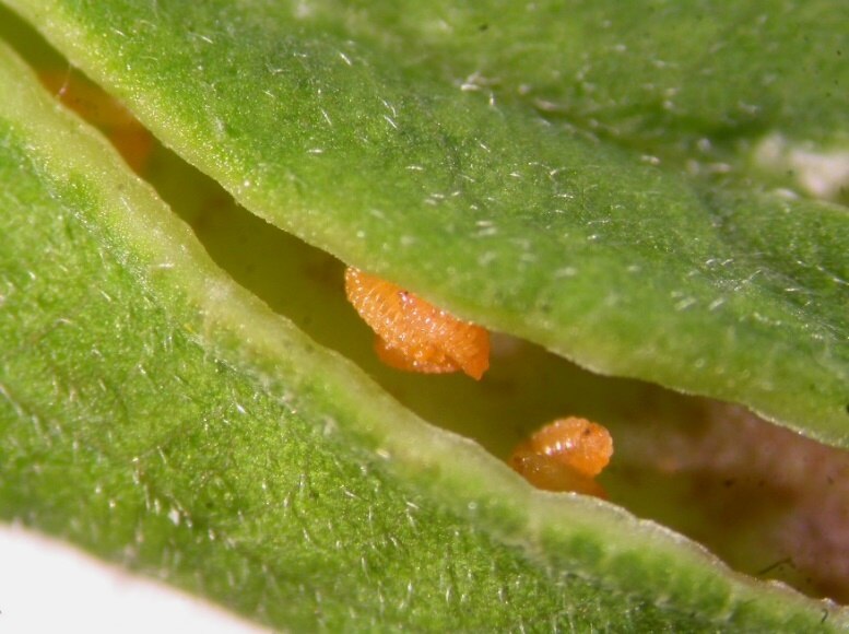 Az egyik kőris-gubacsszúnyog károsítása esetén levélke fonákán, a főér mellett több enyhe kidudorodás látható. Minden dudorban a gubacsszúnyog sárgásszínű lárvái fejlődnek. A kikelt szúnyogok a levél színe felé egy hasítékon távoznak.