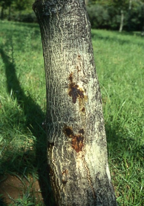 A diófáknál és díszfák törzsein is észleltek hazánkban hasonló jelenséget, amikor a törzsön keletkezett nyíláson sűrű váladék jelenik meg, mely kezdetben folyik, száraz időjárásnál beszárad.