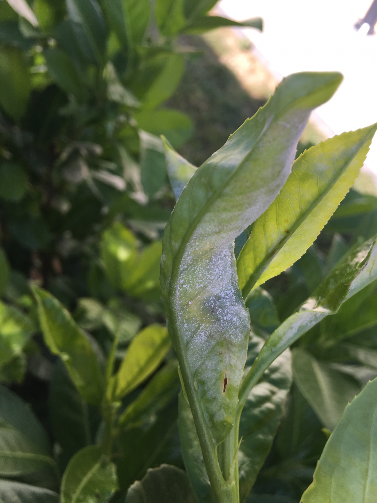 Leggyakoribb a babérmeggy lisztharmat (Podosphaera tridactyla, P. pannosa). A gomba elsősorban a hajtásvégi, frissen kifejlődött vagy fakadó leveleket fertőzi, azokon deformációt, levéllemez hullámosságát okozza. A leveleken kifejlődik a fehéres bevonat, alatta a levél bőrszövete barnás vörös színt nyer, majd elhal. A betegség egész évben fertőz, enyhébb teleken a városokban, beépített területeken, házak melletti kertekben, a téli hónapokban is aktív a gomba, és találhatók friss fertőzésű levelek. A túlöntözött és helytelenül táplált, laza szövetű, gyors hajtásnövekedést mutató állományban párás körülmények között biztos fellépésére lehet számítani. Minden forgalomban lévő lisztharmat elleni szer hatásos ellene.