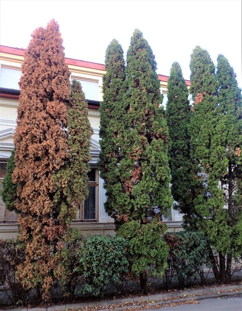 Sz. András kérdése: A tujafákon barnára színeződött leveleket látni és egész ágak halnak el. Mi bántja a tujafákat, mit lehet tenni megvédésükre?